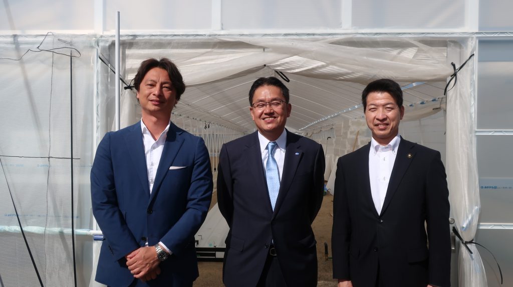 (左)株式会社エスプールプラス和田社長 (中)角谷社長 (右)枚方市の伏見市長